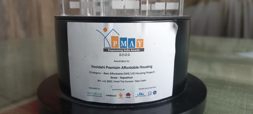 Having won numerous awards till date, the icing on the cake for Vaaidehi Developers was winning the Pradhan Mantry Awas Yogna Award for Best Affordable EWS/LIG Housing Project in Rajasthan on 8th July 2022